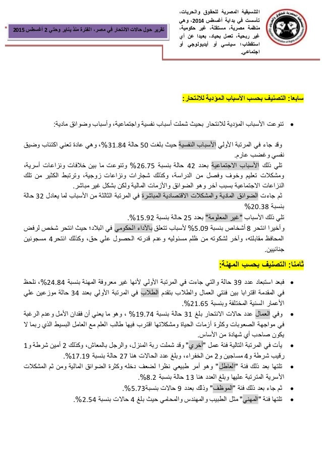 تقرير حول حالات الانتحار في مصر الفترة منذ يناير وحتي 2 أغسطس